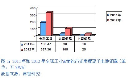 通過圖1我們可以看到,全球鋰離子電池的工業(yè)&儲能市場中,目前主要還是電動工具等工業(yè)器械用量較大,但是,以智能電網(wǎng)的試應(yīng)用、移動通信基站電源等為代表的大型儲能市場,已經(jīng)在快速發(fā)展。如國家電網(wǎng)2011年12月25日正式啟動運營的國家電網(wǎng)張北風(fēng)光儲輸示范項目一期工程,就采購了高達(dá)6.3萬kWh的磷酸鐵鋰動力電池儲能系統(tǒng),從能量和功率兩大方面進行試應(yīng)用。該項目希望達(dá)到的目的主要有:①以儲能來平緩風(fēng)電與光電的波動;②希望通過儲能來矯正風(fēng)電預(yù)測偏差;③希望利用儲能削峰填谷;④希望通過儲能可以調(diào)整新能源出力。目前對試運行得出的總體結(jié)論是:現(xiàn)有儲能技術(shù)基本能滿足風(fēng)電和光電并網(wǎng)的功能性需求,但儲能電池的壽命、安全性和經(jīng)濟性方面還存在問題。而這些不足,也正是鋰離子電池技術(shù)下一步要解決的主要問題。