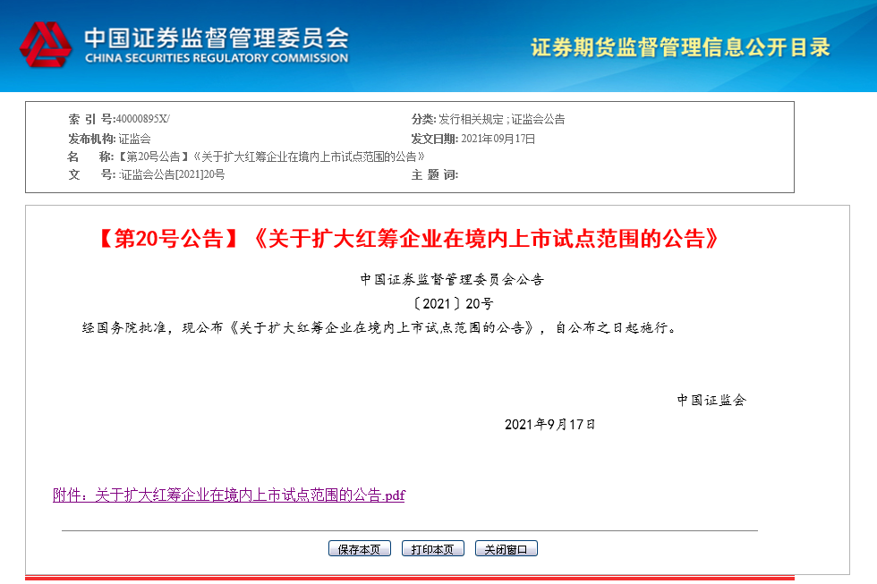 9月17日晚,證監會發布的《關于擴大紅籌企業在境內上市試點范圍的公告》顯示,屬于新一代信息 ... 查閱全文