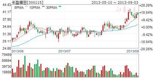 預計長盈精密2013-2015實現EPS為0.98、1.57、2.15,對應的估值是39、24、18,維持強烈推薦投資評級。