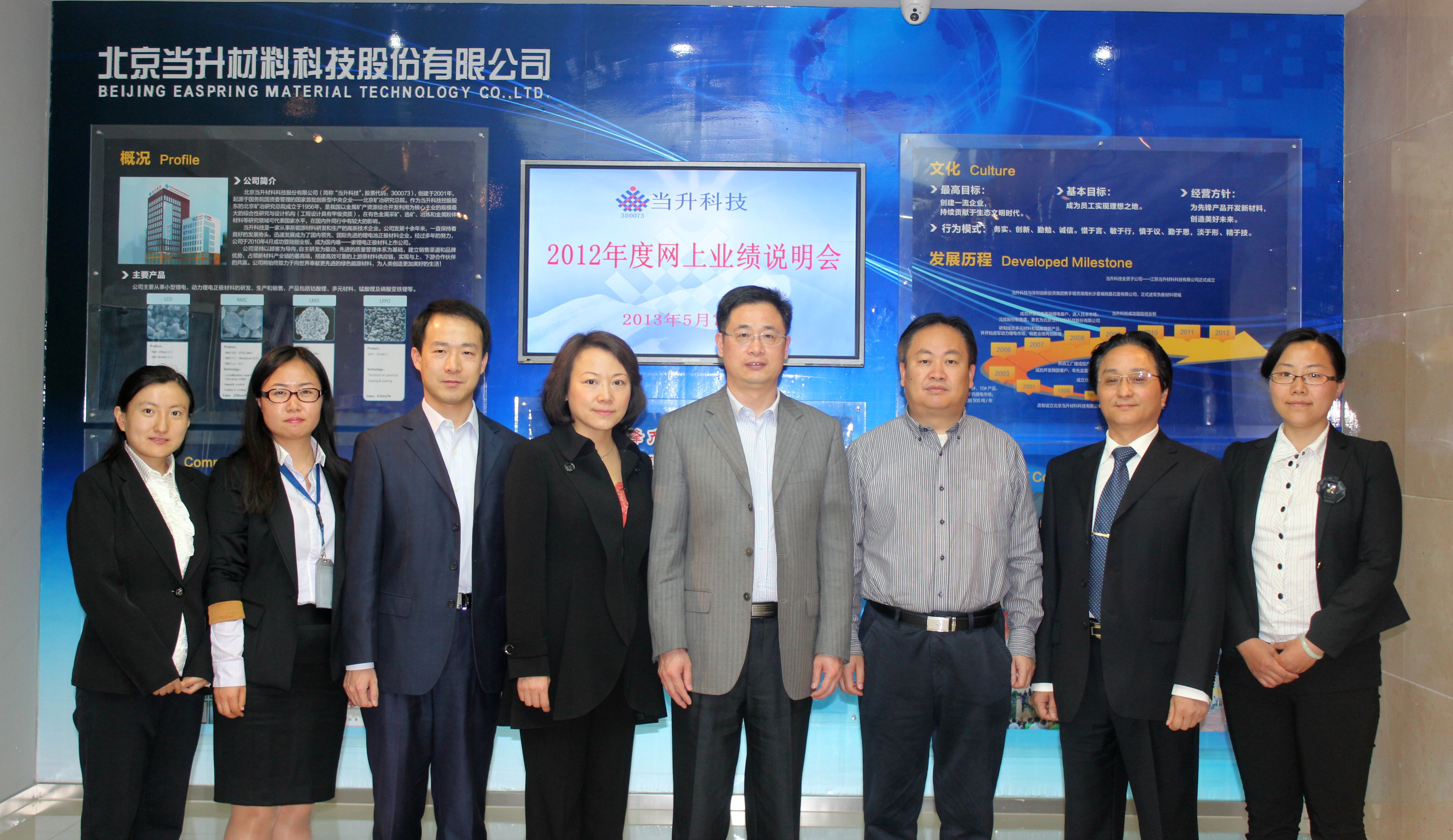 5月7日15時(shí)至17時(shí),“當(dāng)升科技2012年年度報(bào)告網(wǎng)上業(yè)績(jī)說明會(huì)”在深圳證券交易所投資者互動(dòng)平臺(tái)上舉行。當(dāng)升科技總經(jīng)理李建忠、獨(dú)立董事劉洪躍、副總經(jīng)理/董事會(huì)秘書曲曉力、財(cái)務(wù)總監(jiān)黃國(guó)泰以及公司保薦代表人劉禹出席了本次說明會(huì)。當(dāng)升科技于2013年4月20日披露了《2012年年度報(bào)告》,為了使投資者能夠進(jìn)一步了解公司的經(jīng)營(yíng)管理、發(fā)展戰(zhàn)略等情況,舉辦了此次網(wǎng)上業(yè)績(jī)說明會(huì),當(dāng)升科技管理層就大家所關(guān)心的問題與投資者進(jìn)行了在線交流。
