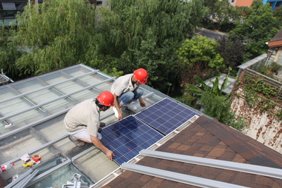 根據(jù)事前測算,該業(yè)主需要安裝8400瓦的太陽能電池板,把別墅屋頂、花園花架、花園陽光房全部利用起來。在院子里,記者還看到一臺監(jiān)控器,工程師告訴記者,這個監(jiān)控器連著用戶屋子里的電腦,登錄賬戶,就可以監(jiān)控太陽能電池板是否在正常工作,有問題可以打電話報修。