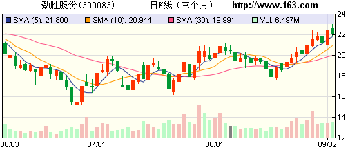 截至發(fā)稿,勁勝股份下跌0.85%,報22.20元。