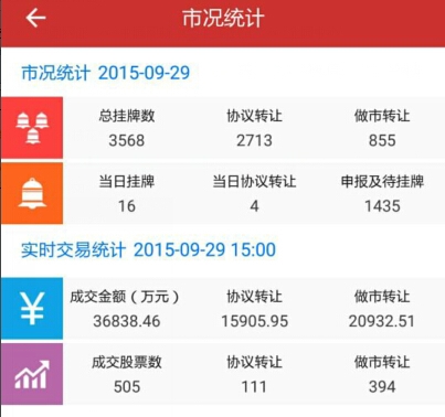 昨日新三板市場(chǎng)掛牌公司總數(shù)達(dá)3568家,總股本1886.92億股,流通股698.14億股。全天共有505只股票發(fā)生交易,成交股份8625.78萬股,成交額3.68億元。