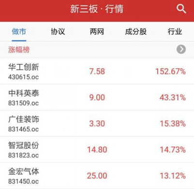 做市轉(zhuǎn)讓方面,有394家公司發(fā)生交易,成交3970.68萬股,成交額2.09億元。其中,華工創(chuàng)新收漲152.67%,領(lǐng)漲做市股,不過成交額僅有7580元。