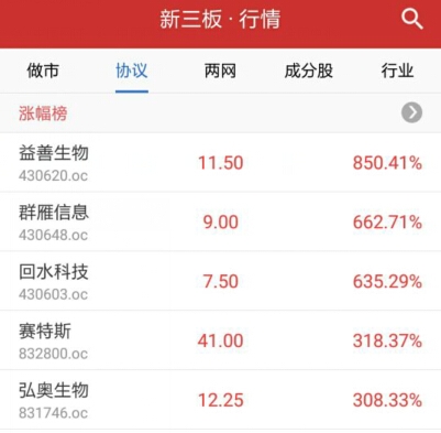 協(xié)議轉(zhuǎn)讓漲幅前五