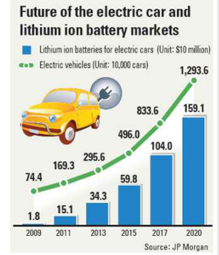 此前,市場預期純電動汽車的年增長率將在5%~15%之間,增長動力來源于從混合動力模型到純電動汽車的轉(zhuǎn)變以及特斯拉Model X等新車型的引進。下圖是摩根大通對未來近10年內(nèi)純電動汽車和鋰離子電池行業(yè)的增長預測: