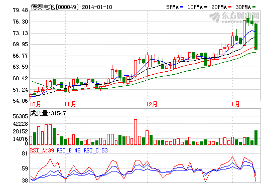 中國電池雜志-中國電池網1月10日訊(肖何 北京報道 ) 周五,德賽電池股價表現較差,呈現持續殺跌的走勢,午后股價遭跌停。收盤報68.63元,跌10.01%。 從2012年12月18日到2014年1月8日,“理財王