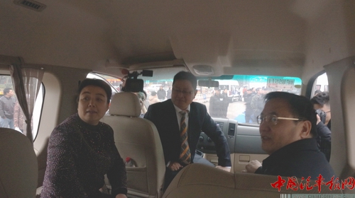 杭州副市長范輝(左)、陳峰(中)、朱福壽(右)在御風(fēng)電動車上