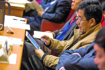 揚子晚報記者看到,這臺國產(chǎn)品牌的平板電腦現(xiàn)場將存儲卡安裝后,便可以使用了。“輸入你的委員證號,就可以登錄了。”工作人員說,和會議相關(guān)的所有文件都可以下載,而且提案的提交也是通過它完成。“以前都是一大堆資料,不好保存,確實很浪費。”他表示,現(xiàn)在查閱資料方便了。