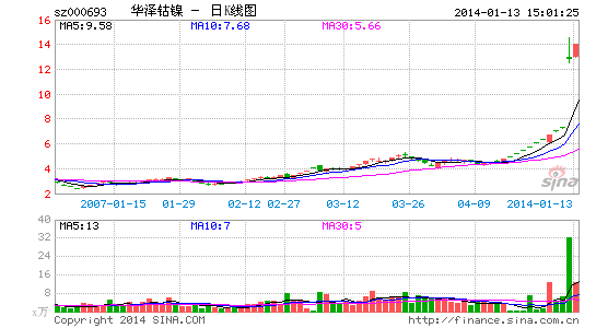 13日有色板塊集體上攻,才復牌的華澤鈷鎳(000693)趁勢再度漲停,截止收盤報收14.04元/股。短短兩個交易日,股價就接近翻番。當初借殼上市,華澤鈷鎳最被市場看好的一塊資產就是全資子公司平安鑫海擁有的元石山鐵鎳礦采礦權,但現在電解鎳價格一降再降,公司當初預計的2013年業績也被腰斬。