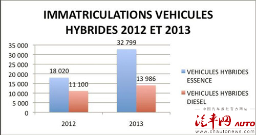 與電動汽車相比,法國混合動力車的銷量更為可觀。2013年,共有46785輛混合動力車在法國注冊,包括32799輛汽油混合動力車及13986輛柴油混合動力車。與2012年的29120輛相比,2013年法國混合動力車銷量增幅達(dá)到60%。