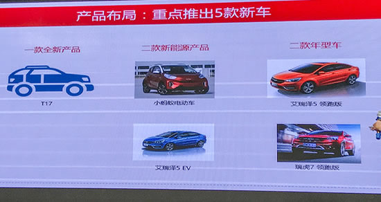 2017是奇瑞“戰(zhàn)略轉(zhuǎn)型2.0”的成長年,奇瑞也將在今年迎來20周歲,奇瑞提出今年的銷量增速不低于2016年。今年奇瑞計(jì)劃重點(diǎn)推出5款新車,其中包括內(nèi)部代號為T17的一款全新SUV和兩款新能源產(chǎn)品。