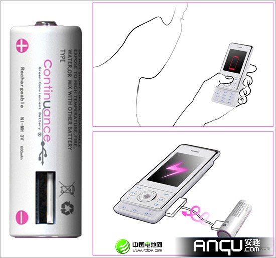 現(xiàn)在的移動(dòng)電源五花八門(mén),什么樣的都有,而曾經(jīng)被用在電子產(chǎn)品上的5號(hào)電池則成為了昨日黃花,似乎早已被鋰電池所淘汰。然而屌絲也有逆襲成功之時(shí),五號(hào)電池如今也大翻身,搖身一變成了移動(dòng)電源。現(xiàn)在就有這樣一種概念電池被設(shè)計(jì)出來(lái),它的外觀跟五號(hào)電池沒(méi)有區(qū)別,但是底部多了一個(gè)USB接口,通過(guò)這個(gè)接口你就可以讓五號(hào)電池為移動(dòng)設(shè)備提供電流了,不過(guò)它真的能當(dāng)五號(hào)電池來(lái)用嗎?成本要多少錢(qián)呢?