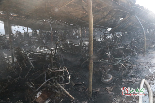 2月17日11時左右,吉安市吉州區(qū)工業(yè)園內(nèi)的新永勝制衣廠電動車棚突發(fā)大火,1000余輛電動車身陷火海。經(jīng)過1個多小時的撲救,大火徹底被撲滅,但火災(zāi)造成300余輛電動車被燒毀,毗鄰的員工宿舍也受到損傷。