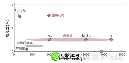 通過 硅錫復合化尋找出路 鋰離子充電電池的負極材料方面,采用石墨的現行鋰離子充電電池的能量密度已逐漸接近極限。因此,今后計劃混合硅和錫等合金類負極材料來提高能量密度,計劃