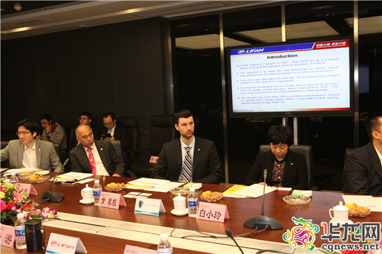 在參觀了力帆汽車生產線,觀看了力帆純電動汽車新產品后,力帆集團總裁尚游和新能源團隊與客人進行了友好的座談。會上,力帆新能源團隊向特斯拉的客人介紹了力帆純電動汽車的現狀以及未來的發展方向。