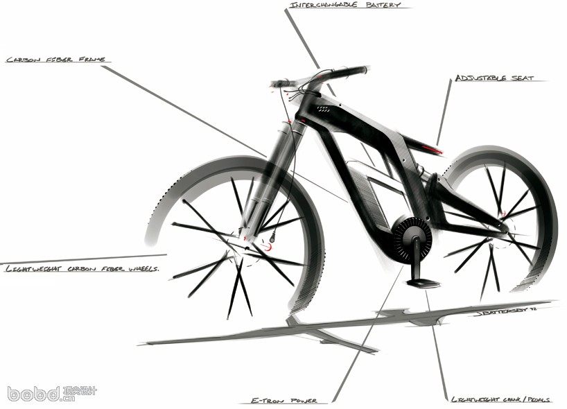Wrthersee的車架裝有LED燈,可形成奧迪特有的“光影簽字”圖案。如果想表演高難度動作,用戶可以降低車座高度,與車架齊平。只需按一下按鈕,車座便可提升高度,供騎行者選擇一個舒適的姿勢。騎行模式和其他功能均可利用車載觸摸屏電腦控制。慕尼黑概念設(shè)計工作室設(shè)計師亨德里克-斯查菲斯表示:“在設(shè)計Wrthersee時,我們遵循了賽車的設(shè)計原則。這款電動自行車擁有非常有色的性能。在設(shè)計上,我們力求將其打造成一個運(yùn)動機(jī)器,而不是一輛普通的自行車?!?