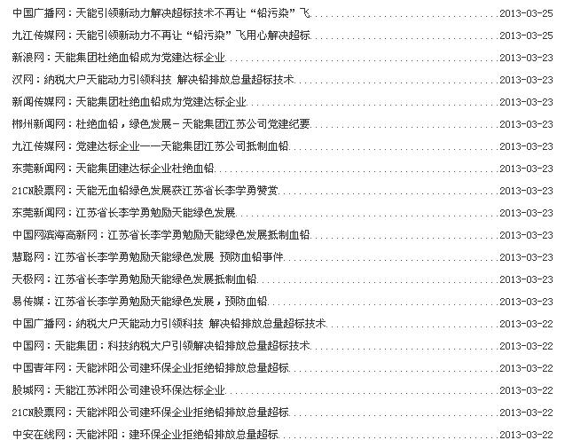 圖為天能官方網(wǎng)站從3月22日開(kāi)始大量發(fā)布一些媒體的轉(zhuǎn)載情況