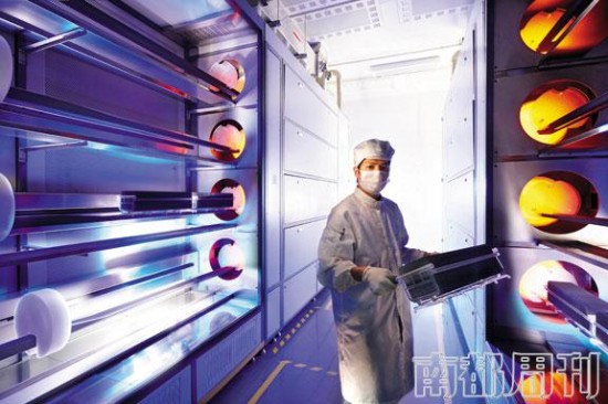 3月的無錫陰雨綿綿。一位正在值班的女保安,正對著門口一幅“無錫尚德感謝社會各界支持”的條幅發(fā)呆。分布在周邊的幾個工廠,開工率不足50%,一些員工被強制性地開始休假。對面,則是傳說中光設計費就花了上億元的生態(tài)大樓。黑色幕墻、流線型設計、精心修飾過的辦公室,聚集了尚德電力的核心管理層。