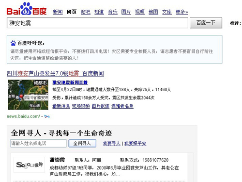 四川雅安的災難時刻牽動著國人的心。除了身居一線正在奮力搶救生者的那些軍人和搜救隊員外,社會各界也紛紛伸出援手,盡自己的綿薄之力為災區人民帶去更多的聲援和幫助。截止到4月21日16點24分,據統計地震造成遇難者人數增至188人,失蹤25人,受傷11460人,這一刻,我們都為災區人民祈福,愿其在災難之后安好。