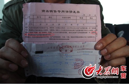 在網友“老兵”提供的保修發票里清楚的寫著,“原裝電池、充電器如有產品質量問題保修半年。”