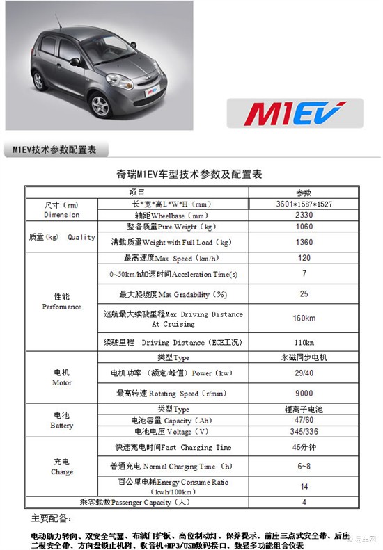 奇瑞M1EV純電動汽車介紹
