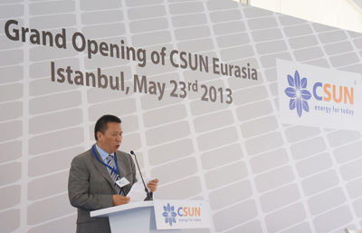 5月23日,CSUN位于伊斯坦布爾的土耳其工廠舉行了隆重的投產儀式。CSUN董事長陸廷秀先生及當地合作伙伴SEUL能源董事長Cargi Seymen出席儀式并致辭。此次投產儀式還特別邀請土耳其能源部部長Taner Yildiz,執政黨副總理Salih Kapusuz以及中國總領事張清洋一同出席,并且受到土耳其當地政府、客戶、金融機構、媒體的高度關注。