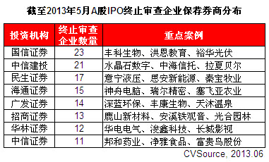 表1 截至2013年5月A股IPO終止審查企業保薦券商分布