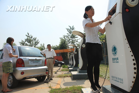 6月15日,山東濱州市市民靳倫杰在濱城區(qū)供電公司“加電站”,僅用了十幾分鐘的時(shí)間,就為自己的愛(ài)車加足了電。劉春迎 攝