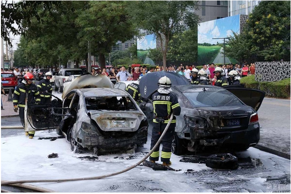 6月26日,北京,當日下午六點多鐘,北京三里屯工人體育場北路發生一起汽車自燃事件,火災殃及到旁邊的另一汽車,由于消防人員及時趕到將火撲滅,事故未造成人員傷亡。