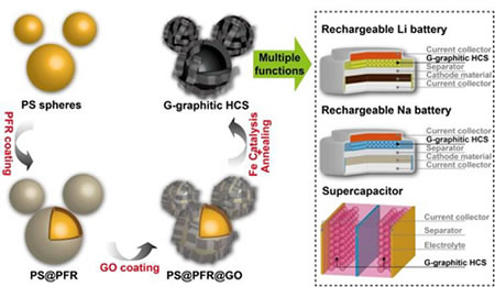 圖2. 仿生模板法設(shè)計(jì)合成石墨烯包覆中空樹脂熱解碳球。