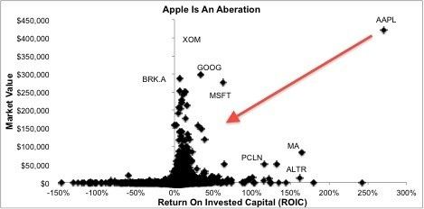 有人認(rèn)為,蘋果股票是價(jià)值股,但前提是該公司能夠維持住當(dāng)前的ROIC。蘋果當(dāng)前股價(jià)約在每股460美元上下,這預(yù)示著該公司的長期ROIC要維持在130%的水平。我認(rèn)為,蘋果很難保持住這么高的盈利水平。
