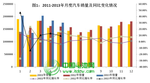 2013年5月,我國汽車產銷環比有所回落,但同比呈現明顯增長。1~5月汽車累計產銷仍保持較高增長速度。