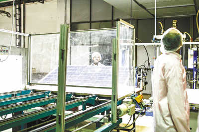 圖為Tata Power Solar Systems位于印度班加羅爾的一處太陽能電池板加工廠。 盧比的持續(xù)貶值已經(jīng)對印度太陽能市場產(chǎn)生了不小的影響。數(shù)據(jù)顯示,盧比本季度已貶值9%,創(chuàng)下歷史最大跌幅。而這也令