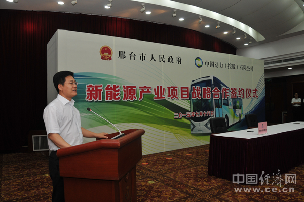 7月16日,邢臺市政府與香港中國動力(控股)有限公司就新能源產業項目簽署戰略合作框架協議。簽約會上,中國動力集團將生產的第一臺采用高功容比三元聚合物鋰能電源驅動的純電動巴士交付邢臺市人民政府進行試運行。