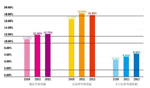 2010年至2012年科華恒盛UPS市場(chǎng)份額比較