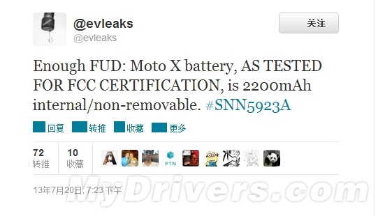 據@evleaks最新爆料顯示,這款X Phone的電池續航很可能也沒那么強大。他在Twitter上透露,X Phone的FCC認證文件顯示該機采用的其實是2200mAh不可拆卸電池,而不是之前傳言的4000mAh以上。