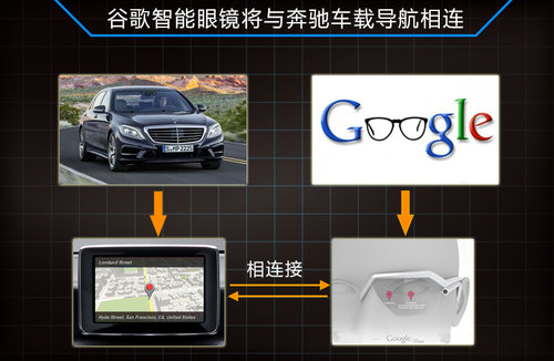目前奔馳公司的研發部門的研發人員正嘗試將谷歌智能眼鏡技術植入汽車的導航系統中,以此使消費者在駕馭汽車與步行的不同階段實現結合,駕駛者將不必再次輸入目的地,大大的提升了出行的娛樂性。