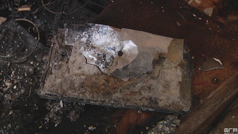 當天下午4時許,記者在現場看到,大火完全被撲滅,樓梯間內墻壁及其他房屋被煙熏得烏黑,起火的房屋內一片狼藉,木門、沙發、被子、家具、衣服鞋子等化為灰燼,窗框和碎玻璃落了一地,席夢思床只剩彈簧,一臺被燒焦的華為Mate7手機仍有刺鼻味道。