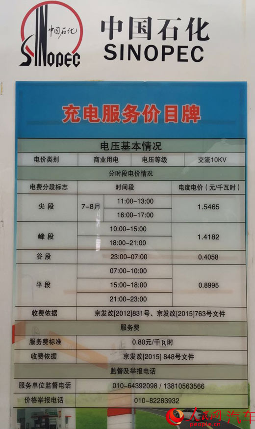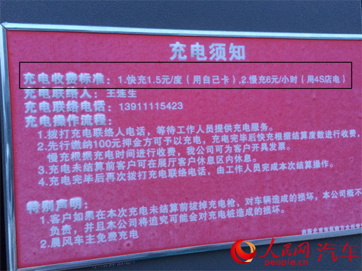 啟辰北京東風南方大興4S店充電樁上標示充電收費標準