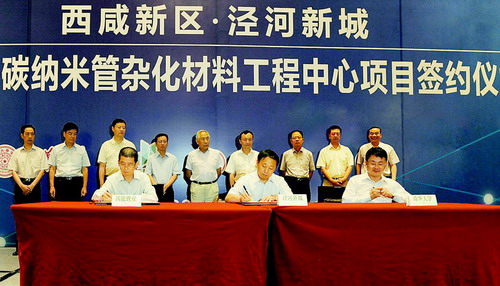 7月26日,西咸新區(qū)涇河新城管委會、清華大學(xué)、陜西國能鋰業(yè)有限公司簽約,石墨烯-碳納米管雜化材料工程中心正式落戶西咸新區(qū)涇河新城。據(jù)悉,清華大學(xué)國際領(lǐng)先的技術(shù)團(tuán)隊將入駐涇河新城,致力于石墨烯-碳納米管雜化材料的研發(fā)與制備,在量產(chǎn)后將形成百億級產(chǎn)值規(guī)模。同時,以鋰硫電池為主的新能源產(chǎn)業(yè),以碳納米管為核心的新材料產(chǎn)業(yè)在涇河新城“鋰谷——中國新材料產(chǎn)業(yè)基地”(以下簡稱:中國鋰谷)將形成產(chǎn)業(yè)集群。西咸新區(qū)涇河新城以產(chǎn)學(xué)研結(jié)合方式打造產(chǎn)業(yè)經(jīng)濟(jì)發(fā)展的新模式正在形成。