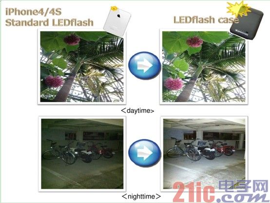其二村田EDLC應(yīng)用于LED閃光燈,或者馬達(dá)驅(qū)動(dòng)等瞬間需要大電流放電的設(shè)備中,進(jìn)行峰值輸出輔助。以下是2張未使用以及使用了EDLC產(chǎn)品的LED閃光燈對(duì)比圖。