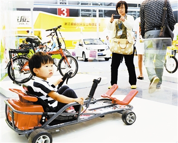 款式奇特的新車型成為大家搶先試騎的焦點(diǎn)。一款休閑車的車把在身體兩側(cè),腳蹬在前輪上,騎在上面就像坐上一個(gè)按摩椅。還有一款出口產(chǎn)品就像賽車一樣,騎行者半躺在里面,采用轉(zhuǎn)把發(fā)動(dòng)和腳踏轉(zhuǎn)向的方式行進(jìn),帶給人們更多騎行樂趣。