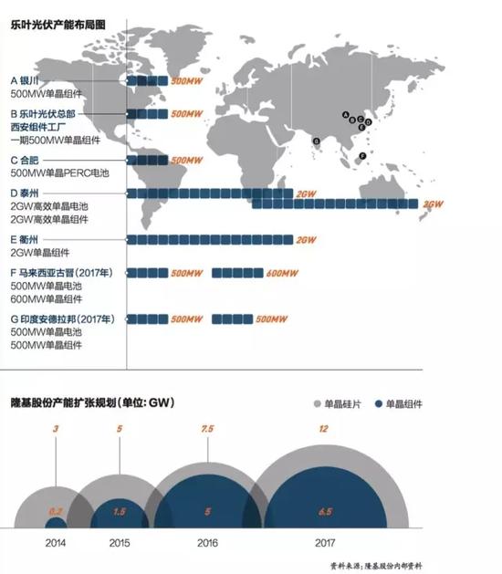 在想通了之后,隆基股份開始大規模布局下游,首先是將樂葉光伏位于衢州的生產能力擴充到2GW。2015年6、7月份,由籌劃建立泰州基地。