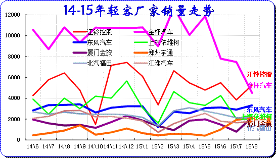 廠家表現分化,15年南北大眾和通用三強中都強力降低批發,降低經銷商的庫存壓力,因此8月批發走勢下降。日系沖刺很猛表現突出。長安沖刺較猛,長安福特表現較強,長安系總體超常規增長。