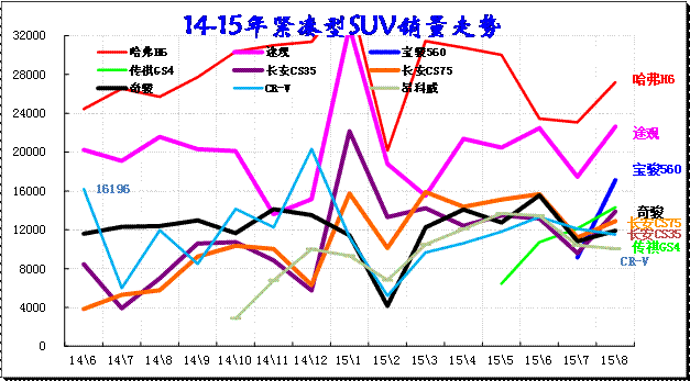 圖表 31緊湊型SUV主力車(chē)型市場(chǎng)走勢(shì)