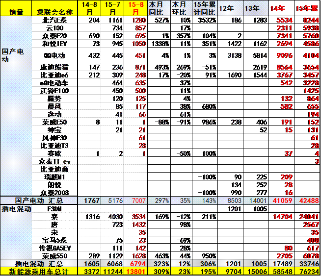 15年1-8月的新能源乘用車銷量7.6萬(wàn)臺(tái),遠(yuǎn)超過(guò)相當(dāng)于14年的5.8萬(wàn)臺(tái)的年銷量。其中電動(dòng)車銷售純電動(dòng)車的銷售主要是低速電動(dòng)車的崛起,隨著QQ、眾泰EV等的銷量處于領(lǐng)軍水平,電動(dòng)車的市場(chǎng)進(jìn)一步活躍,這也體現(xiàn)了低速電動(dòng)車的市場(chǎng)潛力巨大。