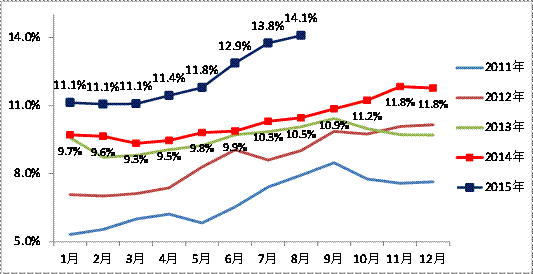 15年1季度促銷相對(duì)穩(wěn)健,4月開始的車市走弱帶來(lái)促銷的快速增加,6-8月的降價(jià)促銷組合使車市的價(jià)格下降還是較大的。增速負(fù)增長(zhǎng)下的促銷急劇增大,15年的競(jìng)爭(zhēng)進(jìn)一步激烈。