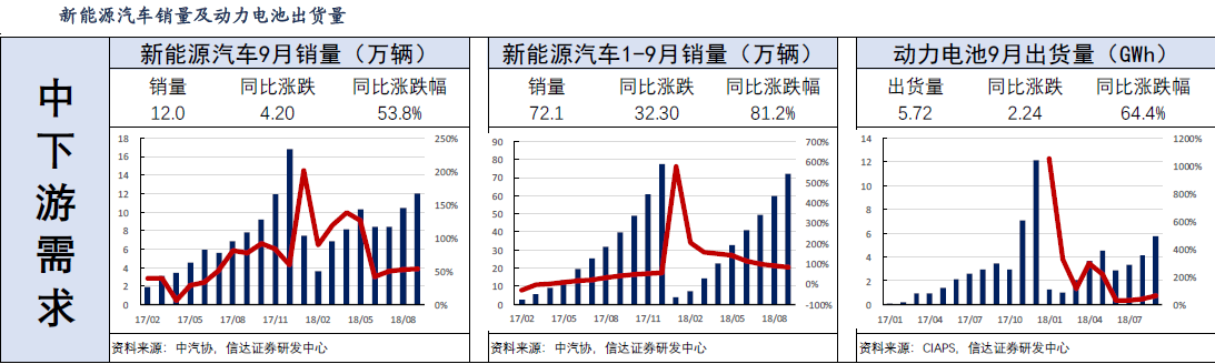 太平洋證券認為,得益于新能源乘用車市場的興旺,新能源汽車產銷量創年內新高的12.7萬輛,今年以來,長續航里程的車型不斷上《新能源汽車推廣應用車型推薦目錄》,越來越多的400~500公里車型投放市場,基本能滿足消費者中短途的出行需求。我國新能源汽車市場已經站在由政策驅動向市場驅動的拐點上,四季度仍可能持續旺銷。