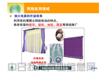 目前,谷岡正在利用約5cm寬、2cm厚的纖維狀太陽能電池試制品進行驗證。今后將安裝在傳感器網絡終端上,用于植物工廠。估計將來還會發展成布狀太陽能電池,用途擴大至窗簾、壁紙、地毯及服裝等(圖7)。(作者:加藤伸一,日經能源環境網 供稿)